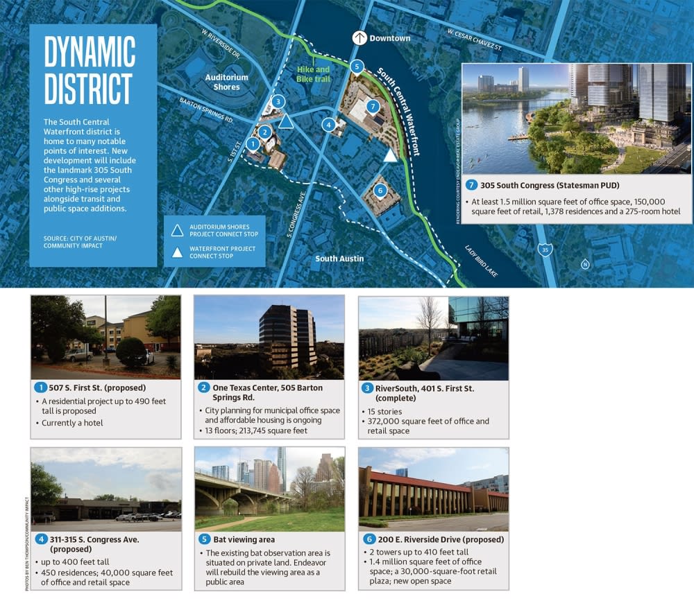 The district may also become a transportation hub bridging South Austin and downtown. Originally, the Project Connect transit system was meant to serve the area with dedicated rail stops adjacent to 305 South Congress and near Auditorium Shores.